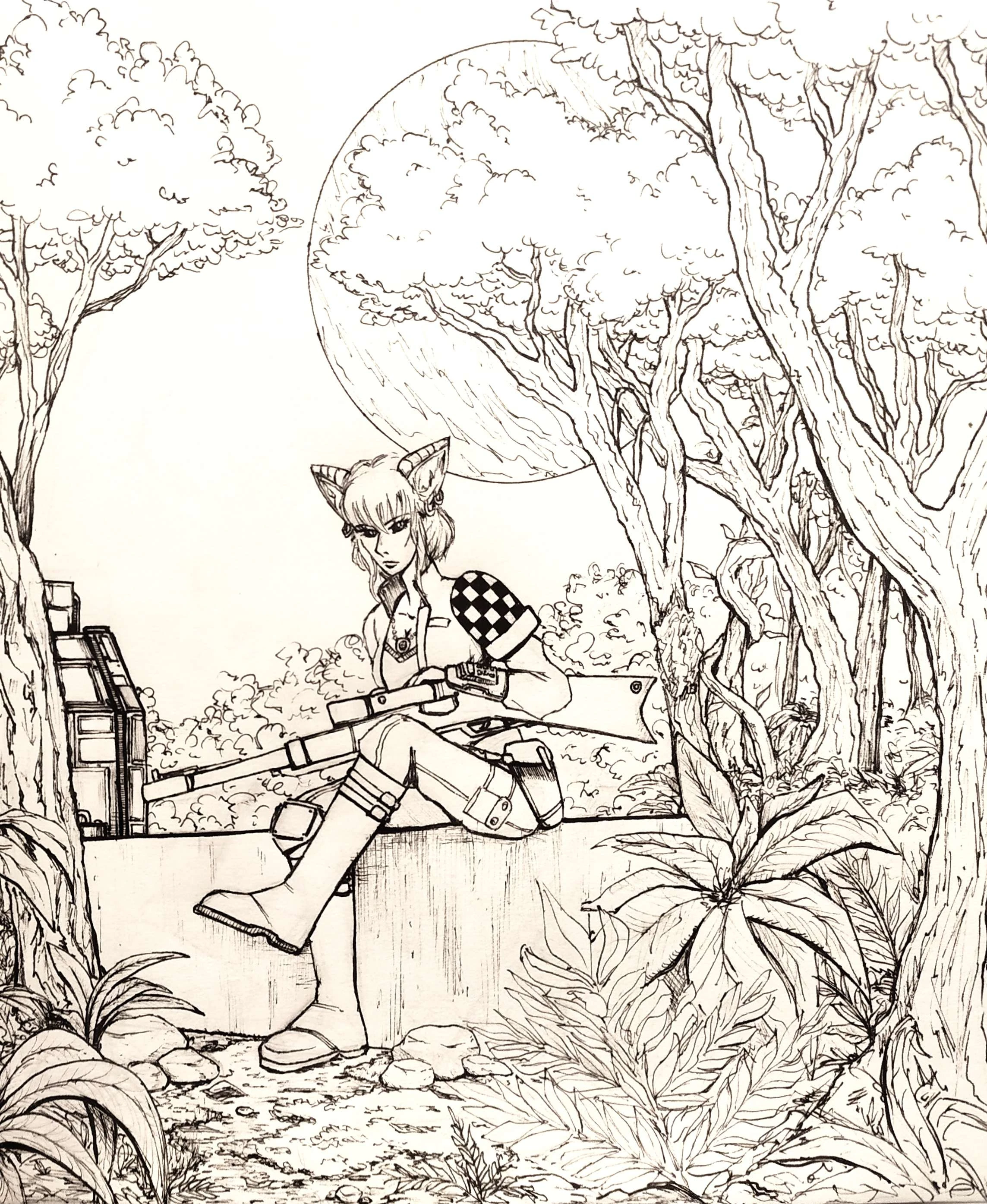 Zbliżali się już do obozu. Na przeciw wyszła im młoda dziewczyna o jasnej jak piasek plaży cerze i blond włosach zgolonych po jednej ze stron. Nosiła zaś szarobeżowy bezrękawnik i szerokie workowate spodnie wsadzone w buty. Za nią stał sam kapitan Stern, z rękoma złożonymi na krzyż. Leciutki wiatr rozwiewał jego bujną zieloną czuprynę.